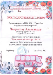 Я, Зверьков Александр Дмитриевич, 20 мая 2005 года рождения. Родился и вырос в поселке городского типа Таксимо Муйского райноа. Закончил 10 классов МБОУ Таксимовской СОШ № 3 в числе ударников.